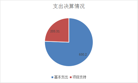 2019年度本年支出合计833.51万元。其中:基本支出630.20万元,占本年支出75.61%;项目支出203.31万元,占本年支出24.39%