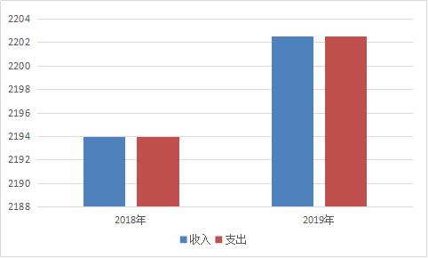 2019年度收、支总计2202.55万元。与2018年相比,收、支总计各增加8.62万元,增长0.39%,主要原因是卫生健康支出(行政事业单位医疗)政策性调增。