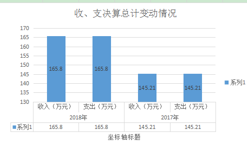 2018年度收入总计165.8 万元,支出总计165.8万元。与2017年相比,收、支总计各增加20.59万元,增长12 %,主要原因是工资福利支出增加。