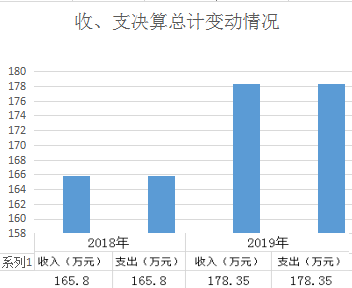2019年度收、支总计178.34万元。与2018年相比,收、支总计各增加12.54万元,增长7.56%,主要原因是工资支出政策性的增加。