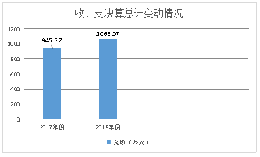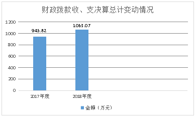 2018年度收、支总计1063.07万元。与2017年相比,收、支总计各增加117.25万元,增长12%,主要原因是政策性调增和项目经费的增加。