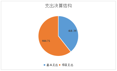 2018年度本年支出合计1063.07元。其中:基本支出418.36万元,占本年支出39 %;项目支出644.71万元,占本年支出61%.