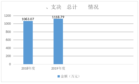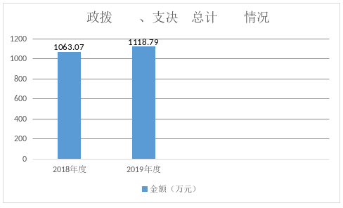 2019年度收、支总计1118.79万元。与2018年相比,收、支总计各增加55.72万元,增长5.2%,主要原因是增加了南干渠游园免费WIFI项目。且政务网络的租用和运维费较去年都有所上涨,项目经费开支加大。