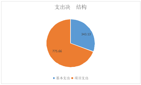 2019年度本年支出合计1118.79万元。其中:基本支出343.13万元,占本年支出30.7%;项目支出775.66万元,占本年支出69.3%。