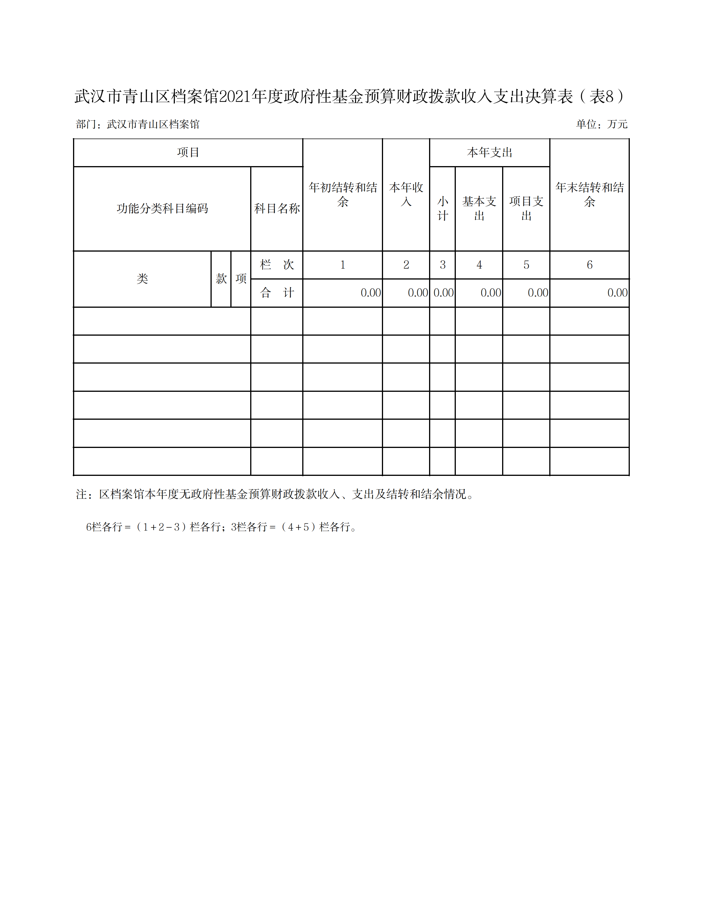 八、政府性基金预算财政拨款收入支出决算表(表8)