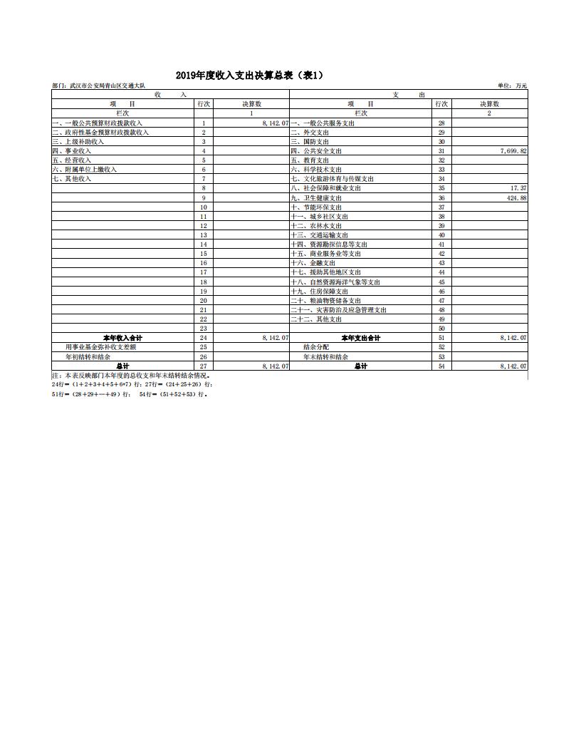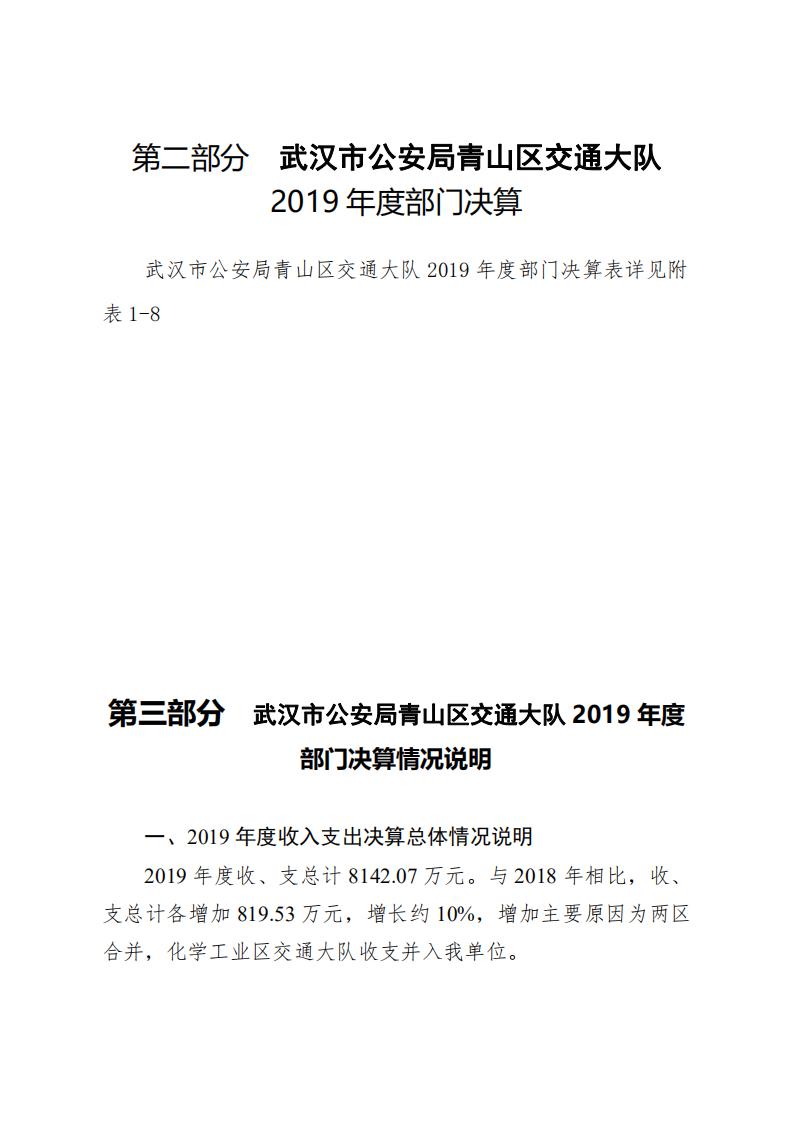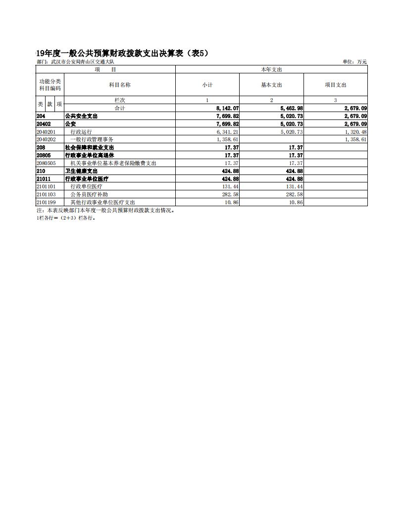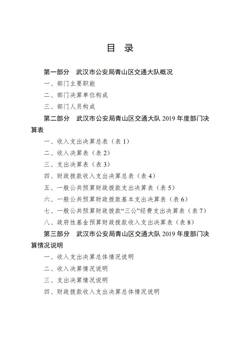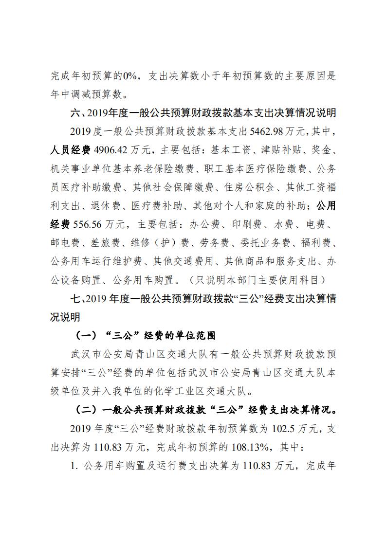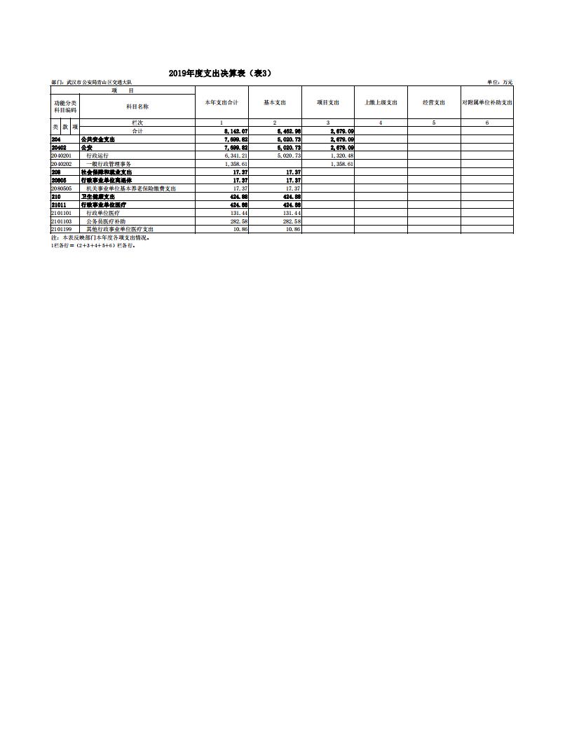 2019年度武汉市公安局黄色影片 交通大队部门决算
