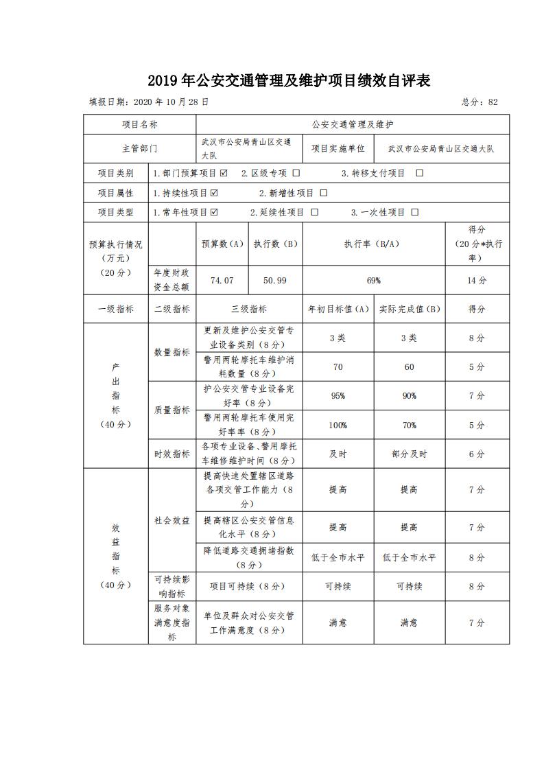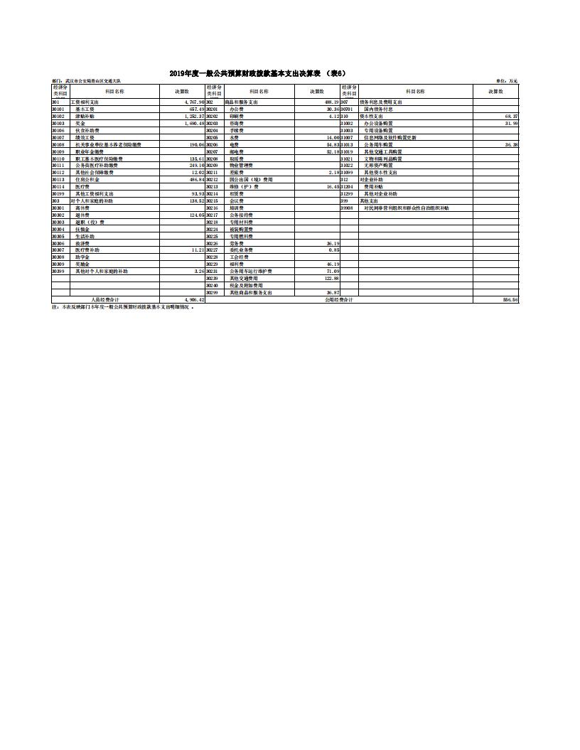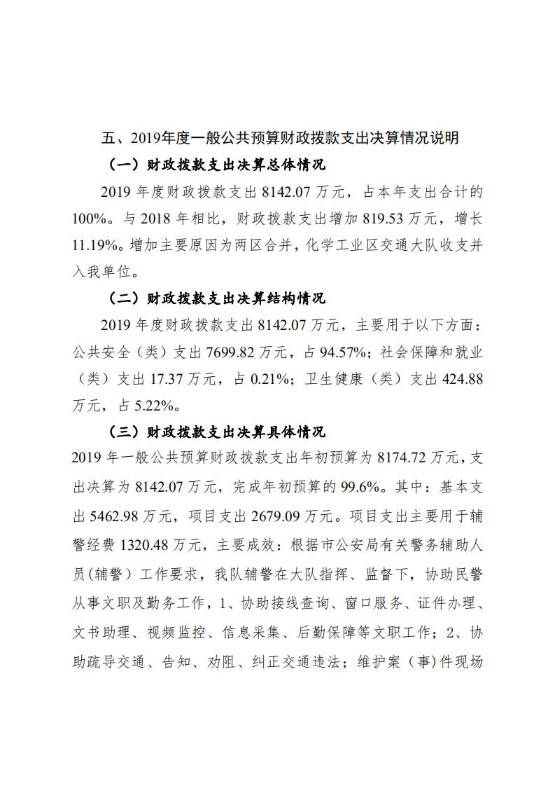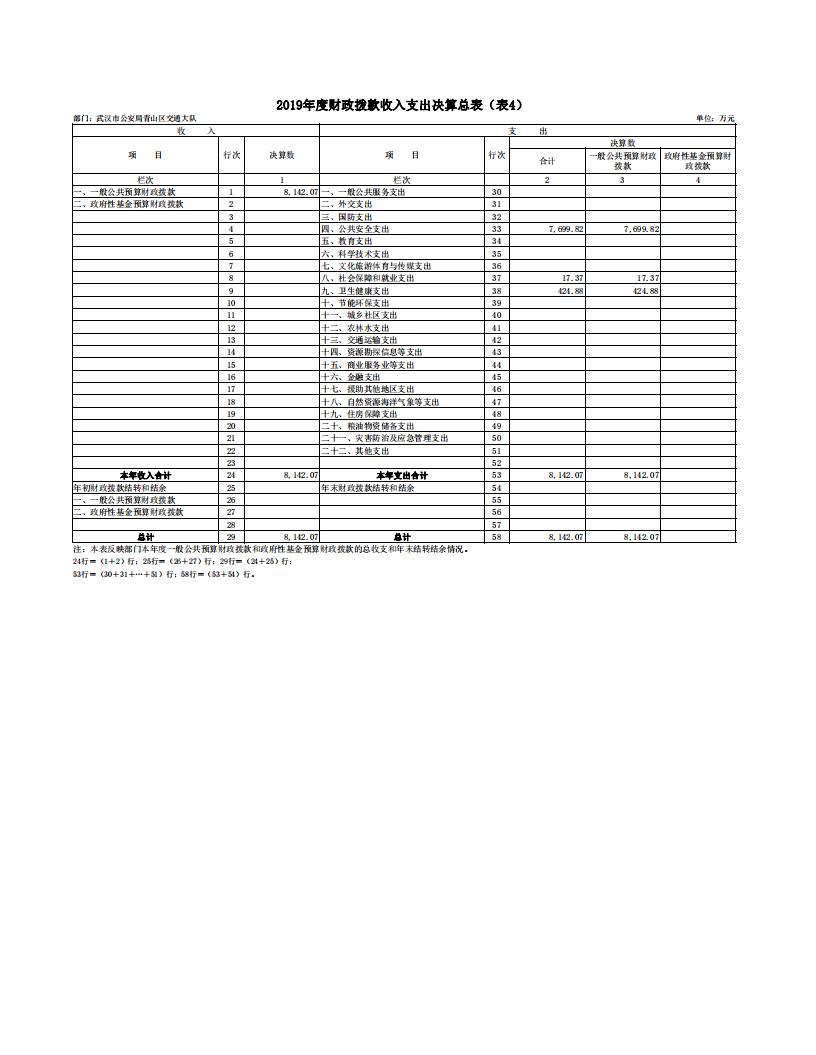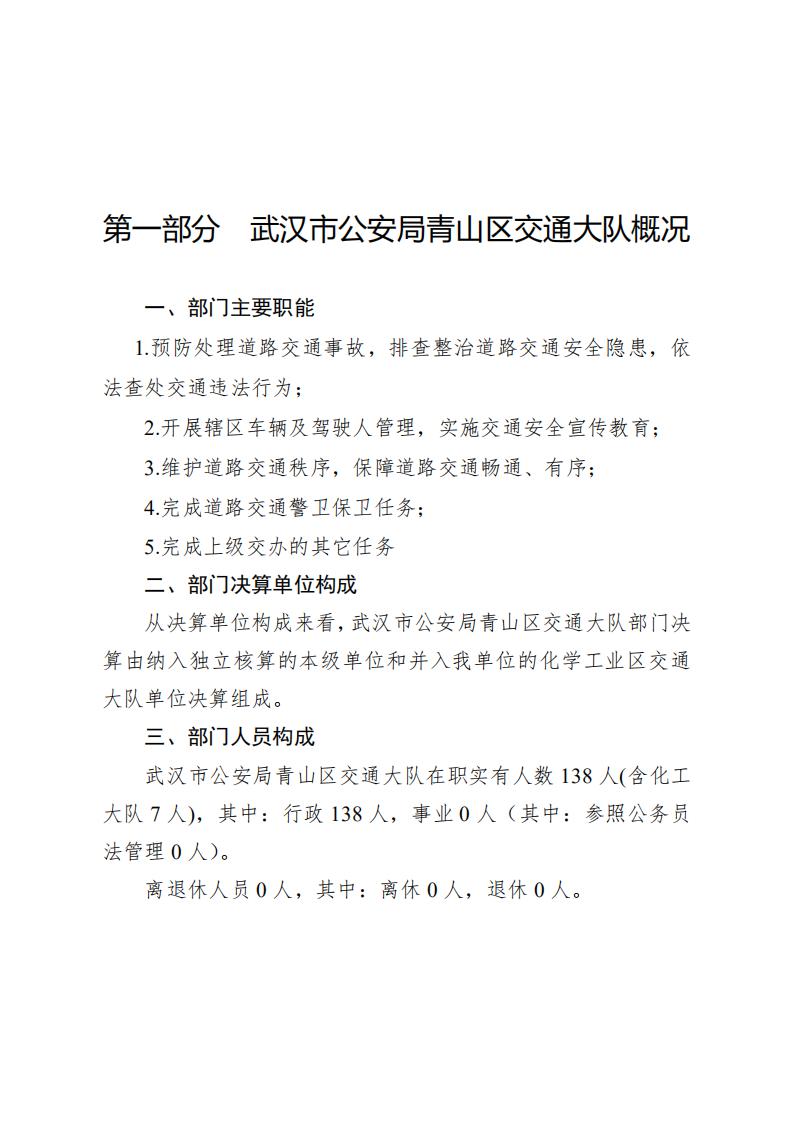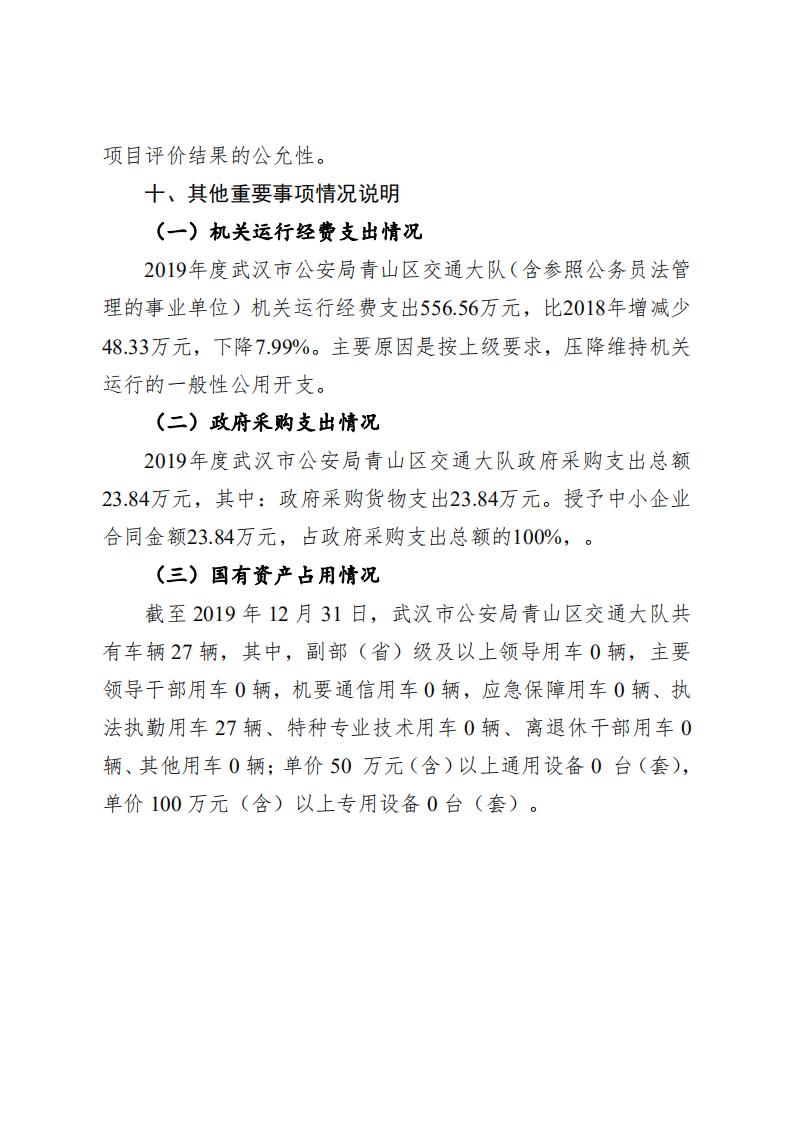 2019年度武汉市公安局黄色影片 交通大队部门决算