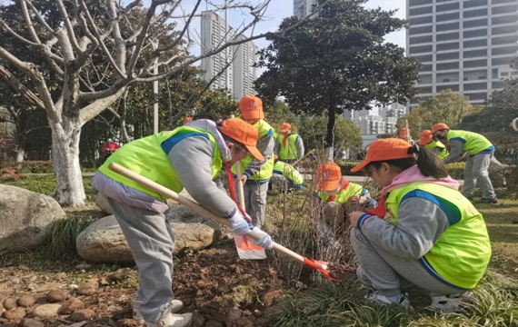 3月8日至3月12日,和平公园、青山公园连续组织开展10场植树及认养活动,辖区中小学生、居民群众、社会团体等近700余人参加,并在园内海棠园、沿湖等区域栽种海棠、菊花桃、红叶碧桃、丹桂等树苗205株,认养梅花、樱花等树木100余株。