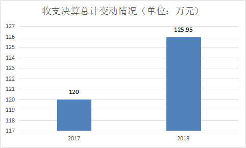 2018年度收、支总计125.95万元。与2017年相比,收、支总计各增加5.95万元,增长4.95%,主要原因是政策性调增。