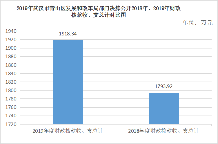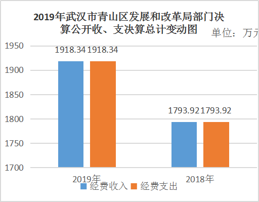 2019年度财政拨款收、支总计1918.34万元。与2018年相比,财政拨款收、支总计各增加124.42万元,增加6.94%,主要原因是基本支出减少人员经费57.88万元,因2019年机构改革人员调出,另1名退休人员工资纳入社保发放;日常公用经费办公费及其他交通费增加7.62万元。项目支出增加174.68万元:主要是1、节能环保支出增加85.21万元;2、商业服务业等支出增加84.55万元,其中小进规企业奖励补助65万元,优化营商环境经费19.55万元等。