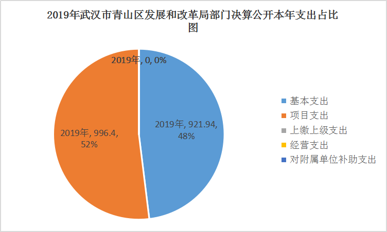 2019年度本年支出合计1918.34万元。其中:基本支出921.94万元,占本年支出48.06%;项目支出996.40万元,占本年支出51.94%;上缴上级支出0万元,占本年支出0%;经营支出0万元,占本年支出0%;对附属单位补助支出0万元,占本年支出0%。