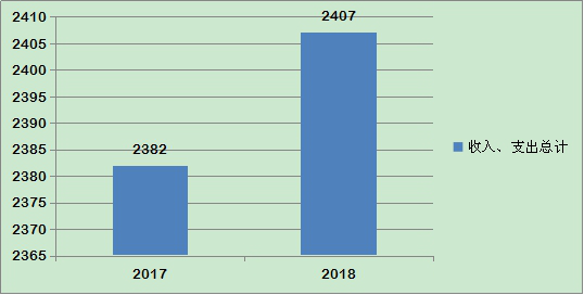 2018年度收、支总计2407万元。与2017年相比,收、支总计各增加25万元,增长1.05%,主要原因是人员经费增加,工作项目经费增加。
