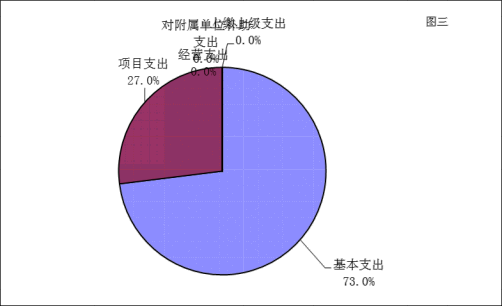 2019年度本年支出合计7,383.44万元。其中:基本支出5,392.87万元,占本年支出73.04%;项目支出1,990.57万元,占本年支出26.96%;上缴上级支出0.00万元,占本年支出0.00%;经营支出0.00万元,占本年支出0.00%;对附属单位补助支出0.00万元,占本年支出0.00%。