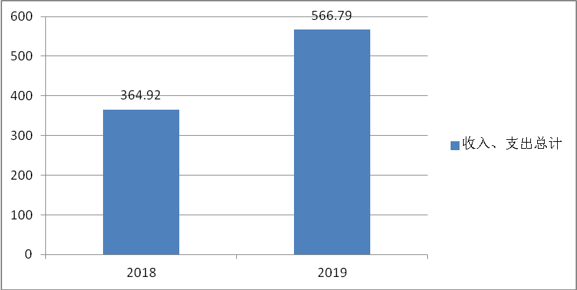 2019年度收、支总计566.79万元。与2018年相比,收、支总计各增加201.87万元,增长55.32%,主要原因是一次性项目及项目经费有增加。