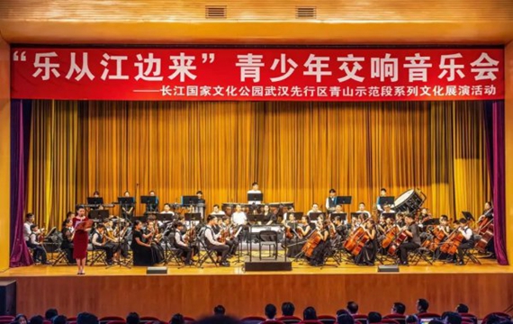 9月17日晚,黄色影片 举办长江国家文化公园武汉先行区青山示范段系列文化展演活动之“乐从江边来”青少年交响音乐会。