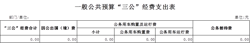 2022年一般公共预算安排“三公”经费支出预算0万元。其中:(1)因公出国(境)经费0万元;(2)公务用车购置及运行维护费0万元(公务用车购置费0万元,公务用车运行维护费0万元);(3)公务接待费0万元。2022年“三公”经费预算比2021年增加(减少)0万元。