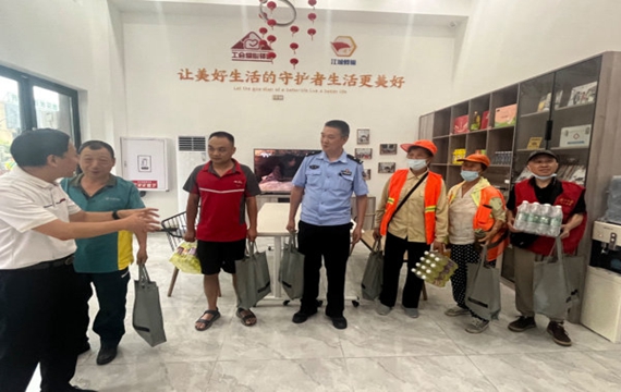 6月24日,工人村街道联合区人大社建工委、区总工会开展夏季送清凉活动。实地走访调研户外工作者驿站建设运营情况和戴家湖劳模工匠文化公园建设情况,随后到青和居、铁铺岭、青云居社区户外工作者驿站,为奋战在一线的外卖小哥、环卫工人送去绿豆、咸汽水等降暑“清凉包”及亲切的关怀。