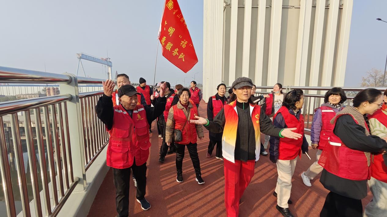 活动期间,一场“桥边讲堂”吸引了众人。船厂社区退休老同志徐师傅结合自身经验,向志愿者和市民生动讲解升降桥的机械原理与运作方式。深入浅出的讲述,既增添了活动的知识内涵,也增强了公众对这座新地标的认同与亲近。