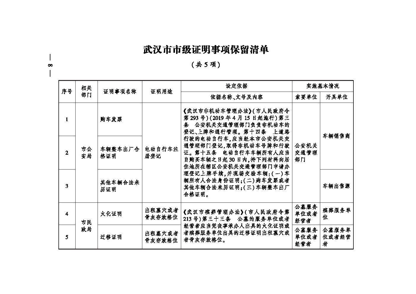 按照《国务院办公厅关于做好证明事项清理工作的通知》(国办发〔2018〕47号)、《省人民政府办公厅关于公布省级证明事项取消和保留清单的通知》(鄂政办发〔2019〕56号)要求,市司法局对证明事项进行了清理,市人民政府办公厅于5月20日在市政府官网发布了《市人民政府办公厅关于公布市级证明事项取消和保留清单的通知》(武政办〔2020〕45号),该通知决定取消18项市级证明事项、保留5项市级证明事项。