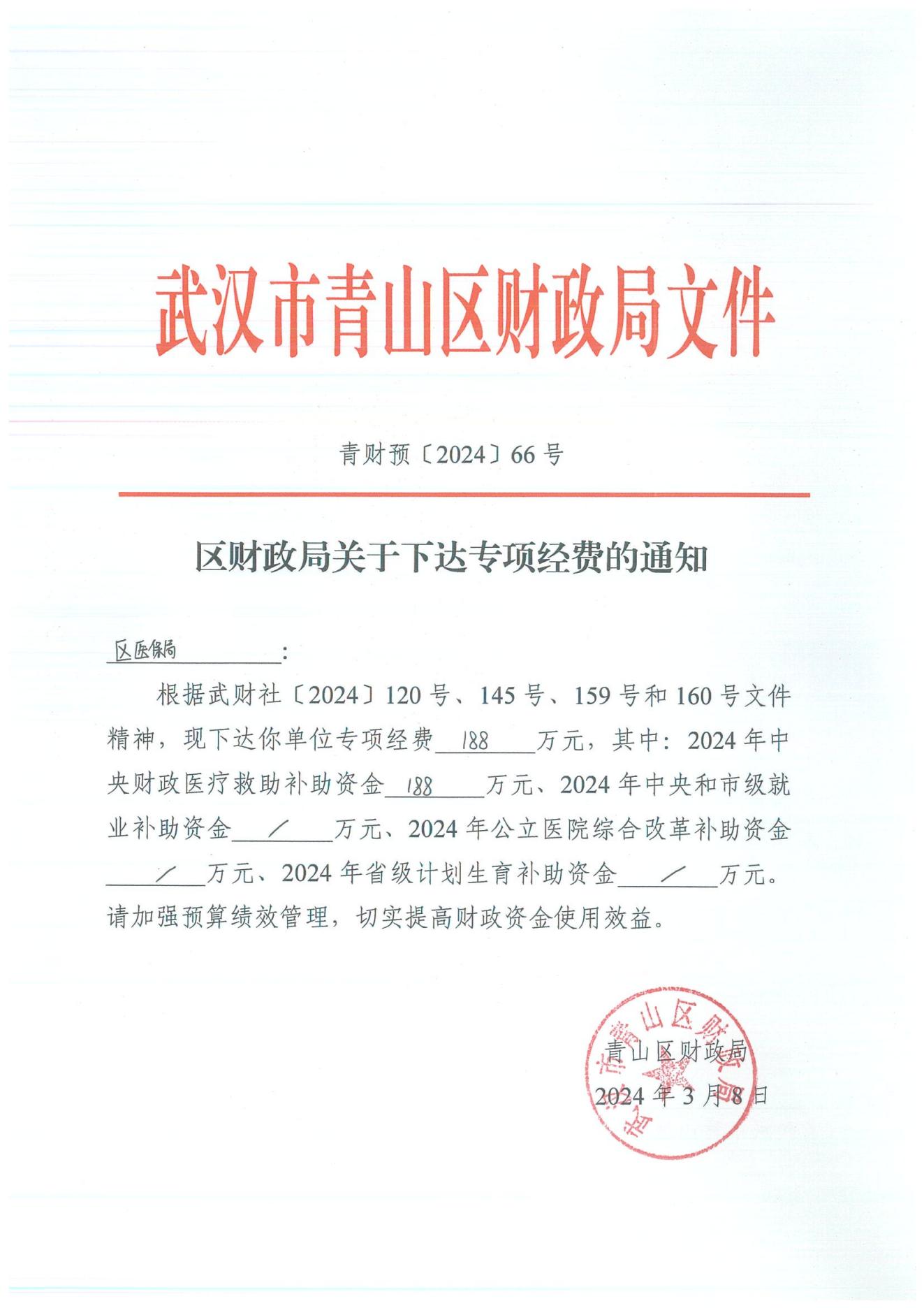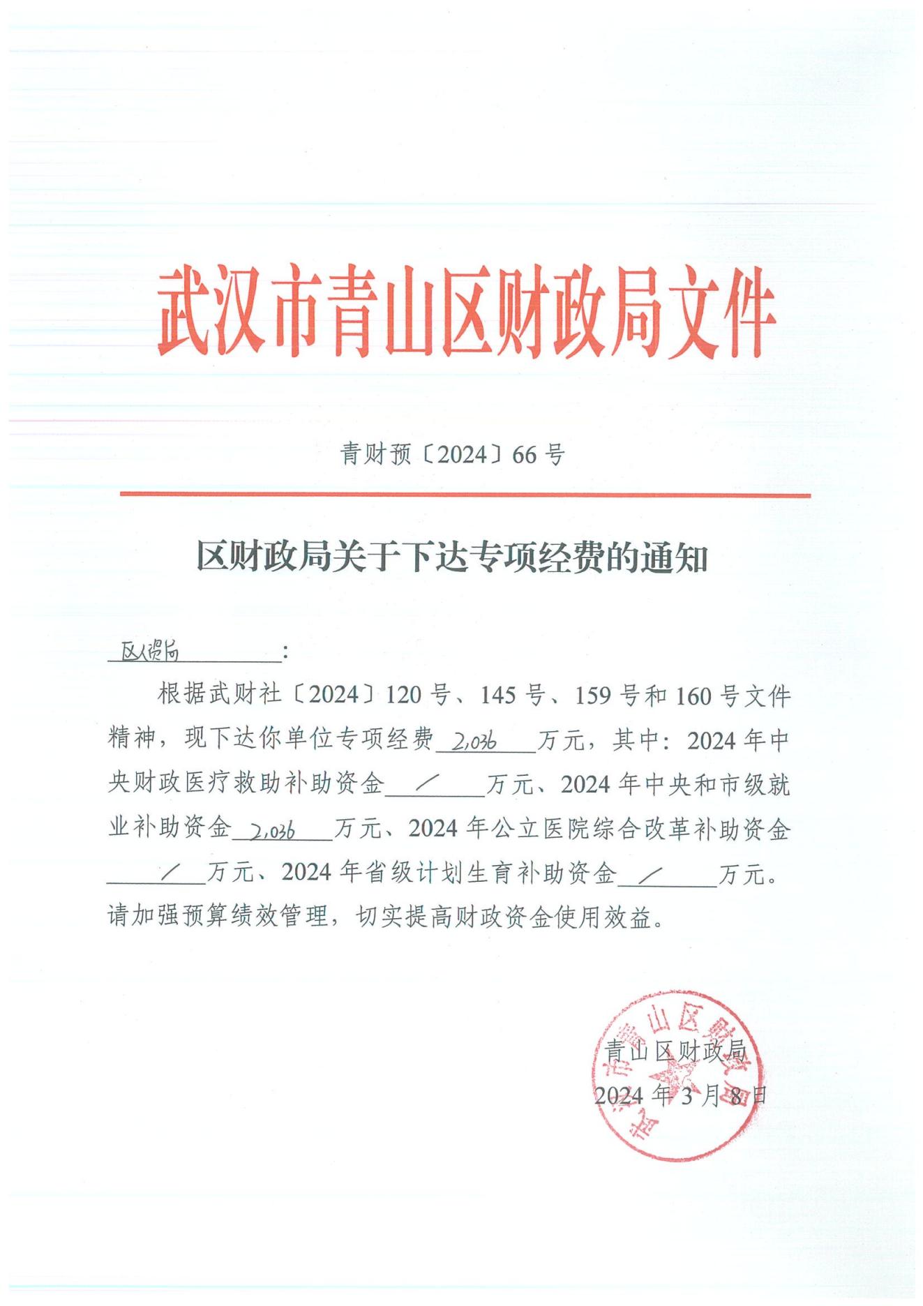区财政局关于下达专项经费的通知 青财预〔2024〕66号