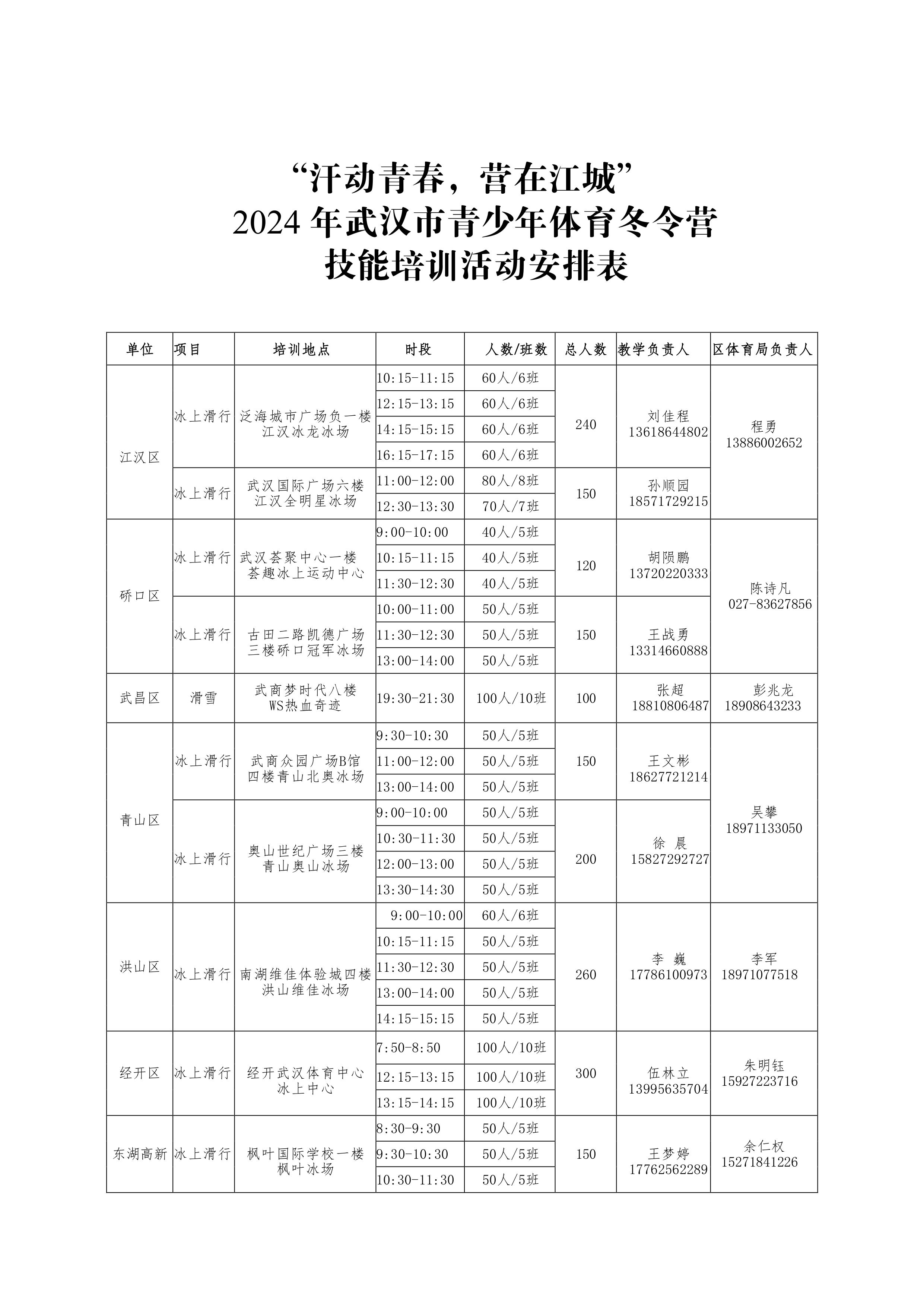 “汗动青春,营在江城”2024年武汉市青少年体育冬令营技能培训活动安排表