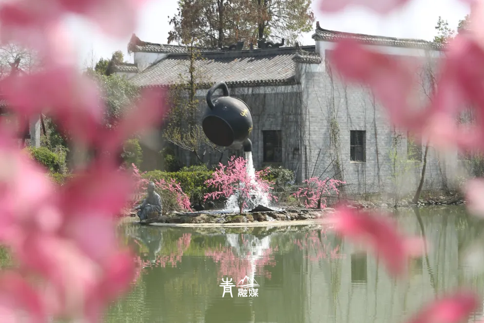 搭配上张公山寨李庄的徽派建筑,漫步其间,别有一番古典淡雅的风味。绿树繁花、白墙黑瓦、小桥流水,让人流连忘返。