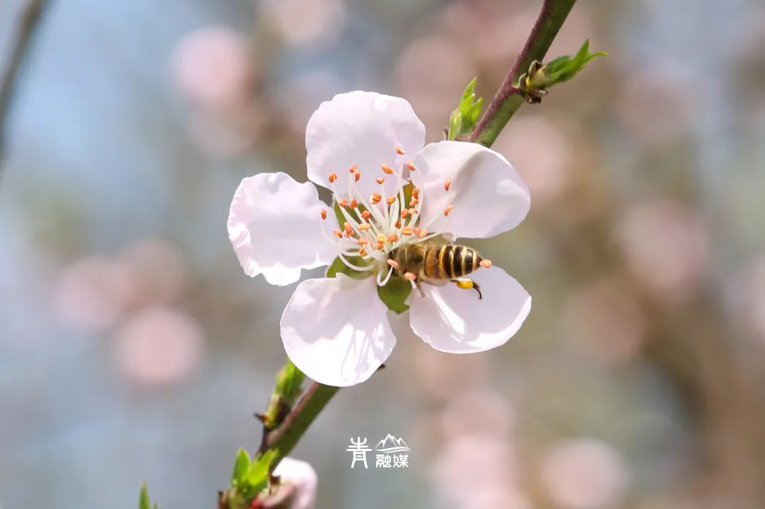 桃花、杏花、梨花争相绽放,花间藏着春的密语,构成一幅如梦如幻的画卷。春风吹拂,耳边是蜜蜂嗡嗡的声音,百花包围中满是浪漫的滋味。