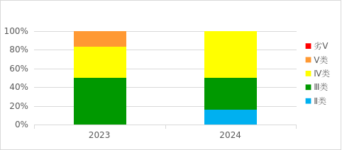 图3 2023-2024年北湖大港北湖泵站水质类别比例图
