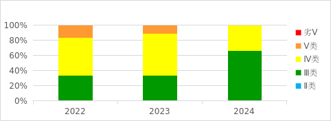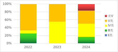 图1 2022-2024年黄色影片 武丰河江心泵站水质类别比例图