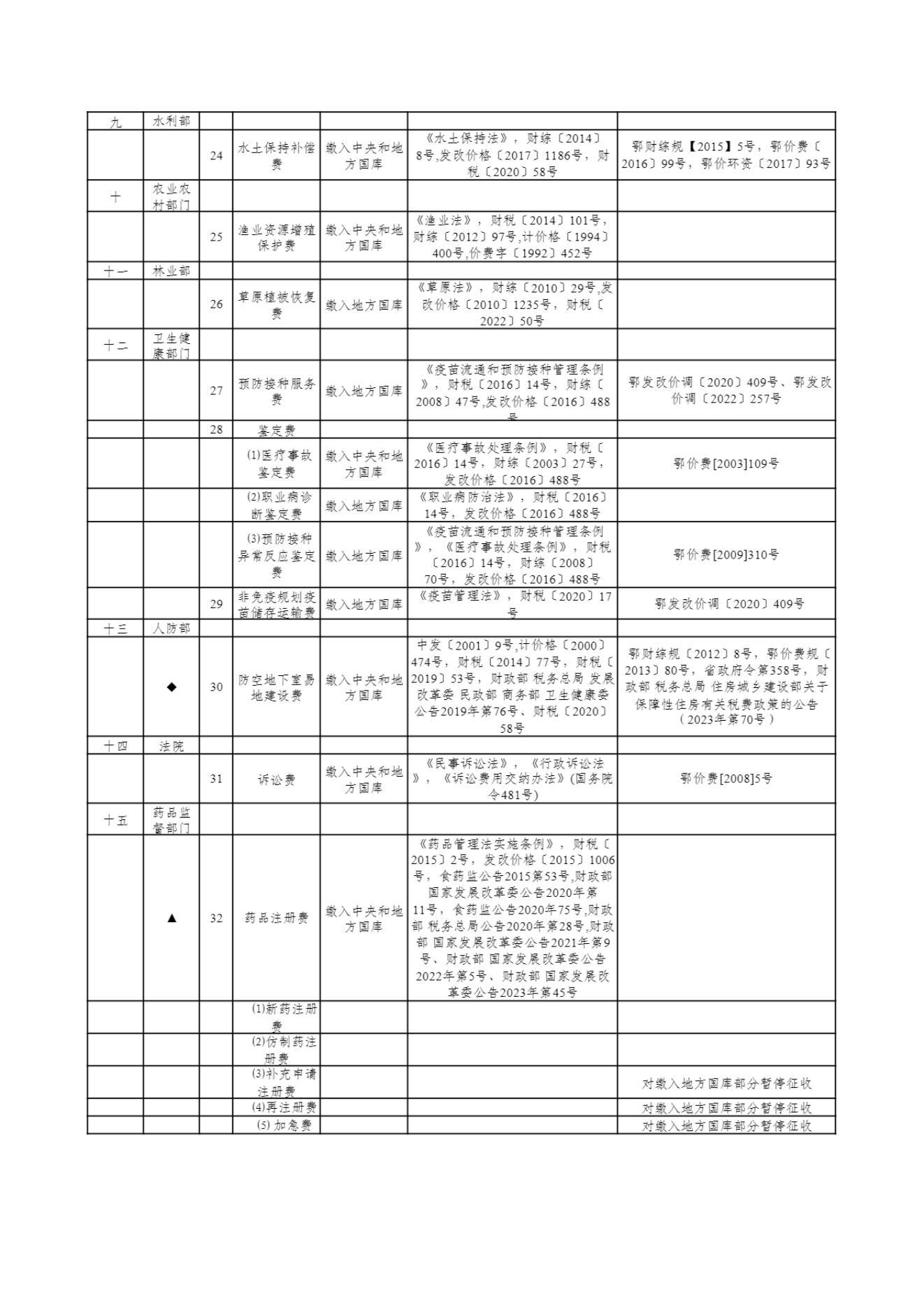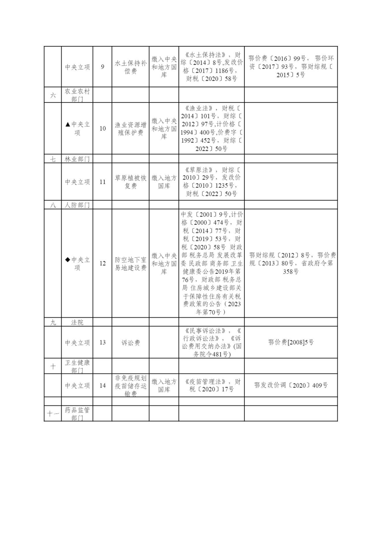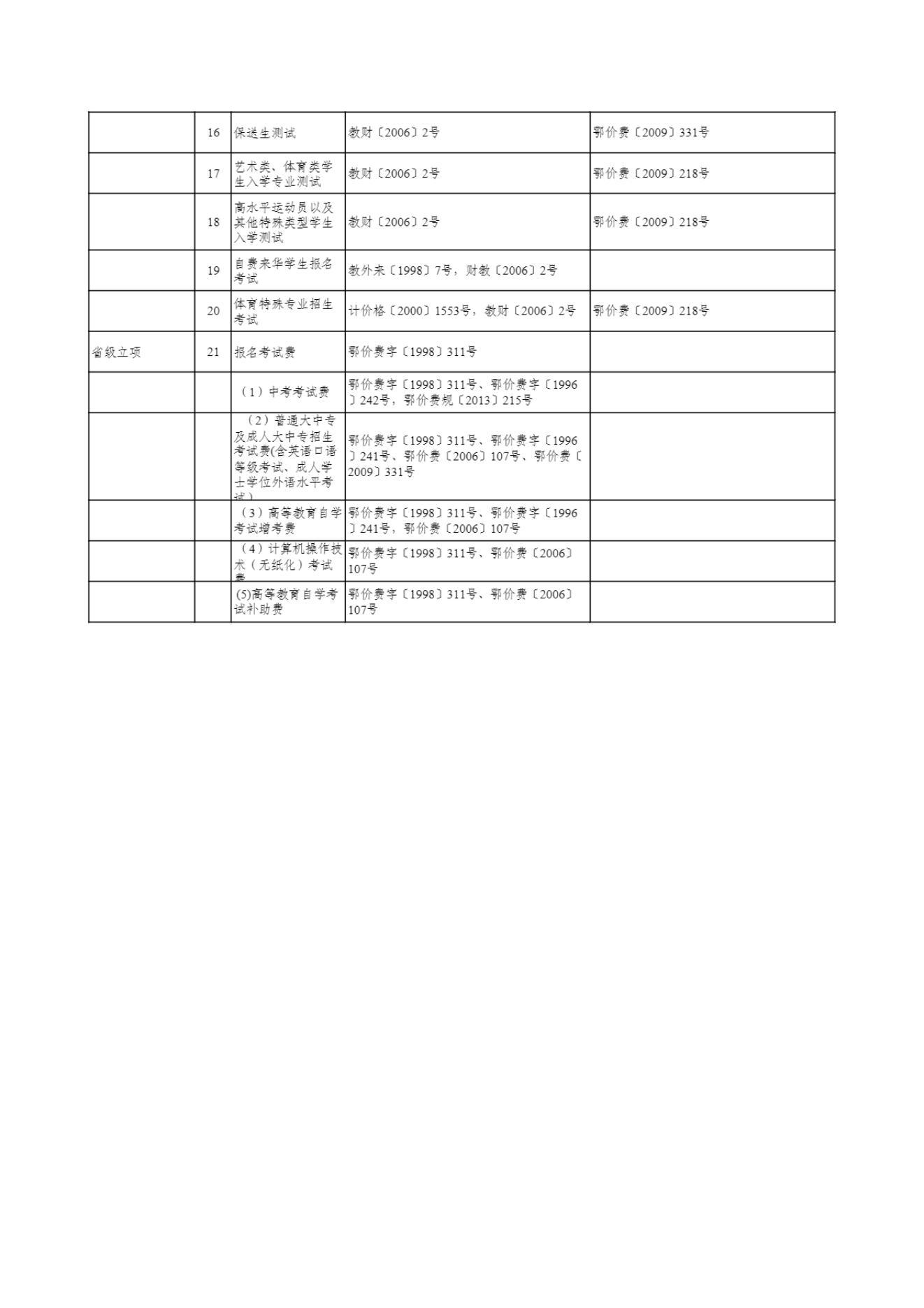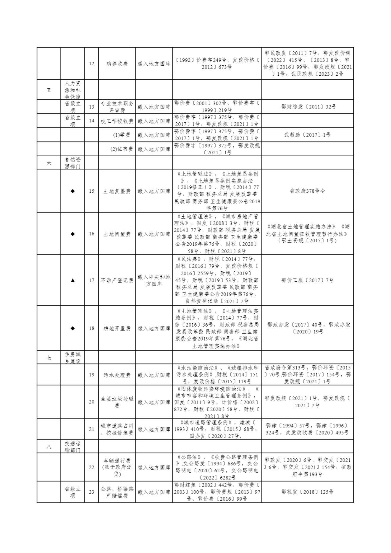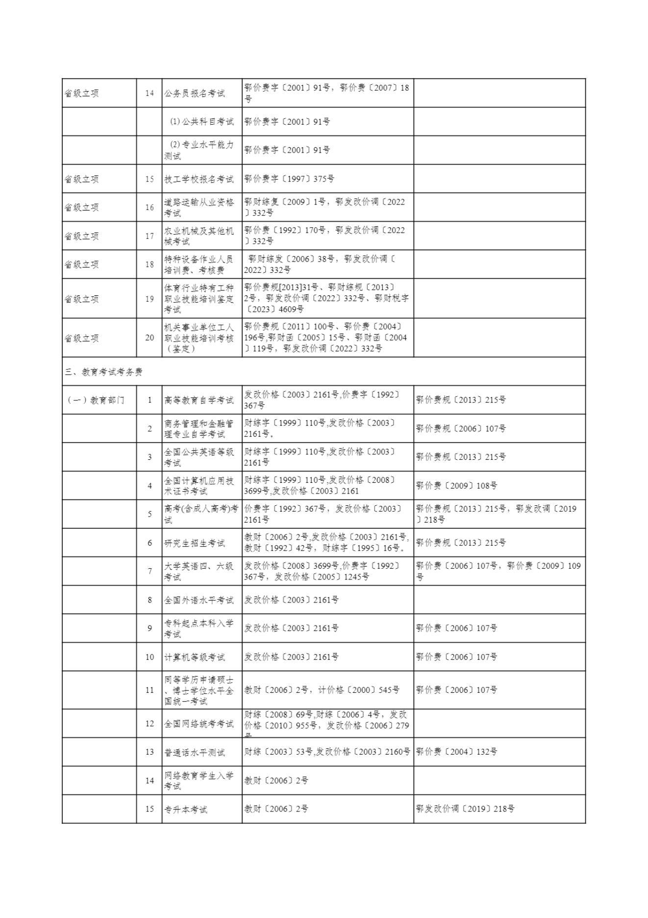 武汉市及市直部门和单位收费目录清单