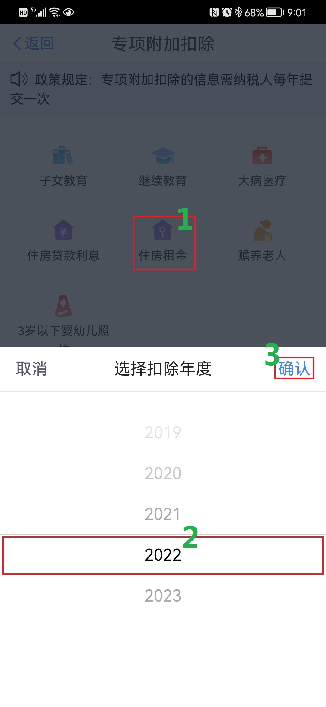 进入申报界面后,“选择扣除年度“为2022,点击“确认”。