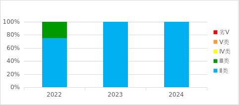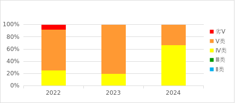 图1 2022-2024年黄色影片 武丰河江心泵站水质类别比例图