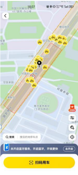 作为目前最热网红景点,古德寺门口人流密集,为了解决门口共享单车停放集中影响通行的问题,武汉江岸交警在全市范围内首创设定了电子围栏,在古德寺大门左右200米的范围内禁止车辆还车。