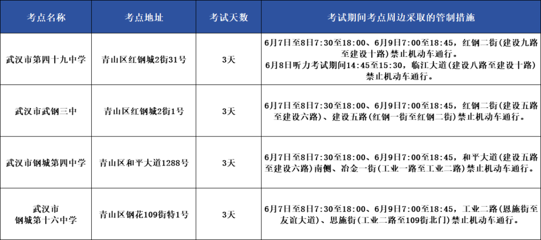 6月7日至8日7:30至18:00、6月9日7:00至18:45,和平大道(建设五路至建设六路)南侧、冶金一街(工业一路至工业二路)禁止机动车通行。