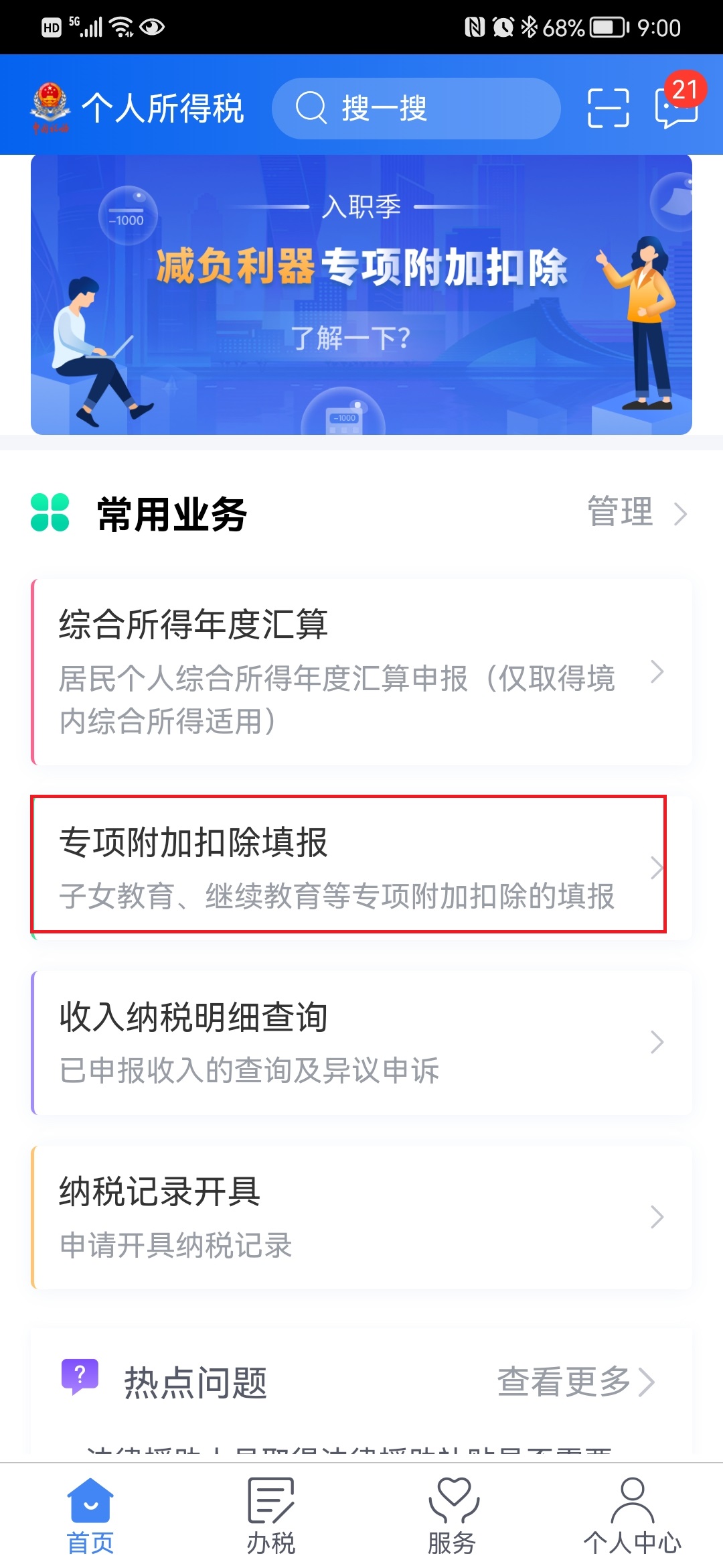 纳税人登录个人所得税手机APP后,在黄色影片,通过“专项附加扣除填报”进入专项附加扣除界面,选择“住房租金”。