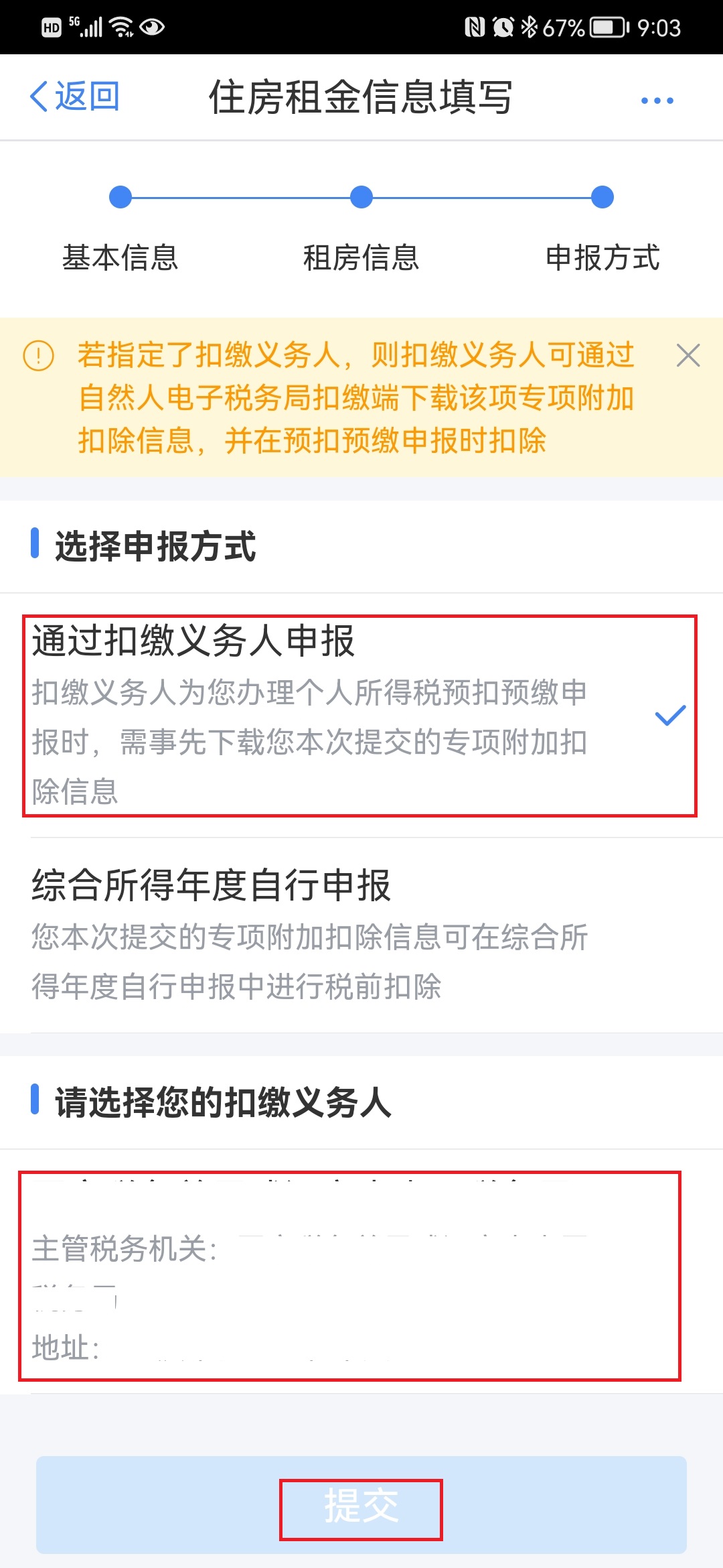 “通过扣缴义务人填报”,那么在任职单位发放工资薪金预扣税款时,就可以享受住房租金专项附加扣除。