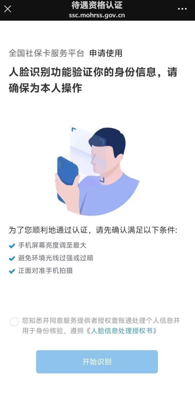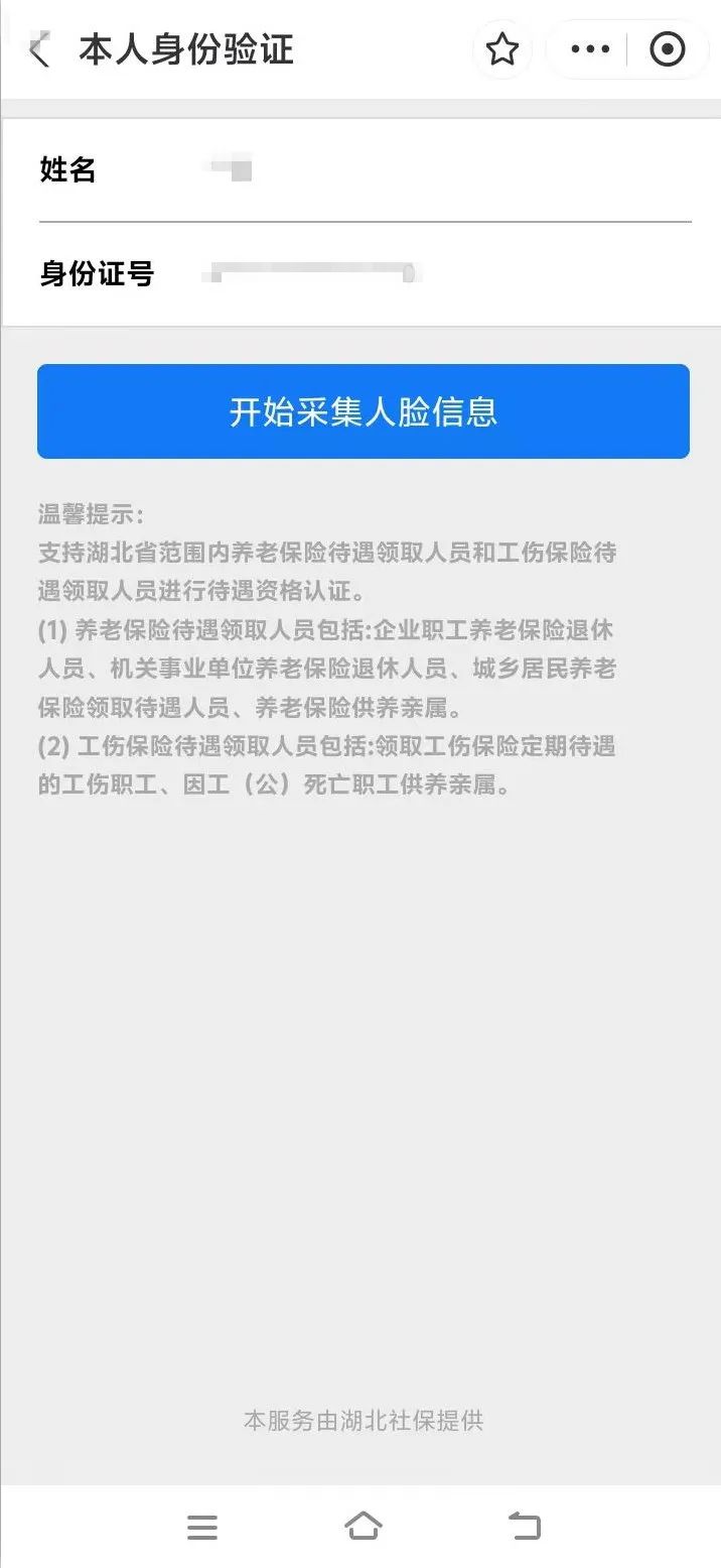 1. 扫描上方二维码后,在跳转界面,点击“本人身份验证”或者“帮亲友进行身份验证”,填入“姓名”、“身份证号”,点击“开始采集人脸信息”即可开始资格认证。