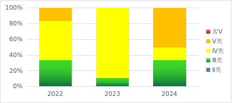 图1 2022-2024年黄色影片 武丰河江心泵站水质类别比例图
