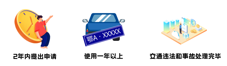 1、在办理机动车迁出、共同所有人变更、转让登记或者注销登记后两年内提出申请;